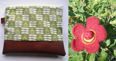 Des petites bricoles en tissu, cuir, toile enduite, laine. Couleurs pep's et mélanges de matières.Marie-France Michaux Bénédicte Szczurek "Maïa Sofa"Amélie Lemonnier "L'aumônière", maroquinerie fine artisanale