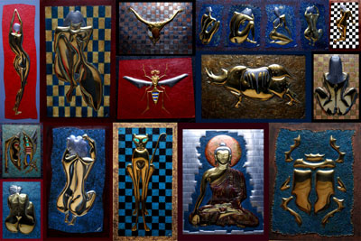 Catherine Mercier Des bijoux de laiton et de verre travaillés au chalumeau, de corne et d'os sculptés. Des pièces originales,inspirées de l'antiquité,la "Fantasy",l'orient ou l'Art Nouveau.Didier Delitte sculpteur dinandierPhilippe Oranger "Ganesha By"