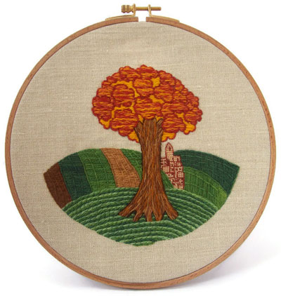 Kits de broderie qui mélangent passion de l'artisanat traditionnel, histoire et références culturelles. Chaque kit est conçu et assemblé par l'artiste, qui privilège des matériaux locaux et naturels . La laine est teintée par main sur chanvre.Odile Bosquet