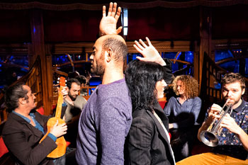 Les musiciens mêlent reprises décalées des chants traditionnels et compositions dans le style ladino, langue hispanophone et poétique des juifs d’Espagne entre XVI ème et le début du XX ème. Une guitare aux accents électriques et d’élégantes lignes de contrebasse viennent conter les histoires de ces poèmes côte à côte avec la voix chantée.