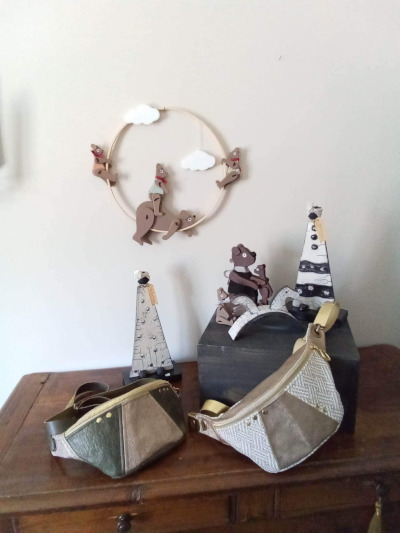 Nathalie Blaszczyk, créations textiles Pascal Harbonnier, création vannerie Jean-Pierre Hu, peinture et dessin Laurène Lobry, créations textiles Ma Copine et Moi, créations textiles et céramique Lucie Nicolas, photographie d’art Les Doigts de Fée’ron, carterie
